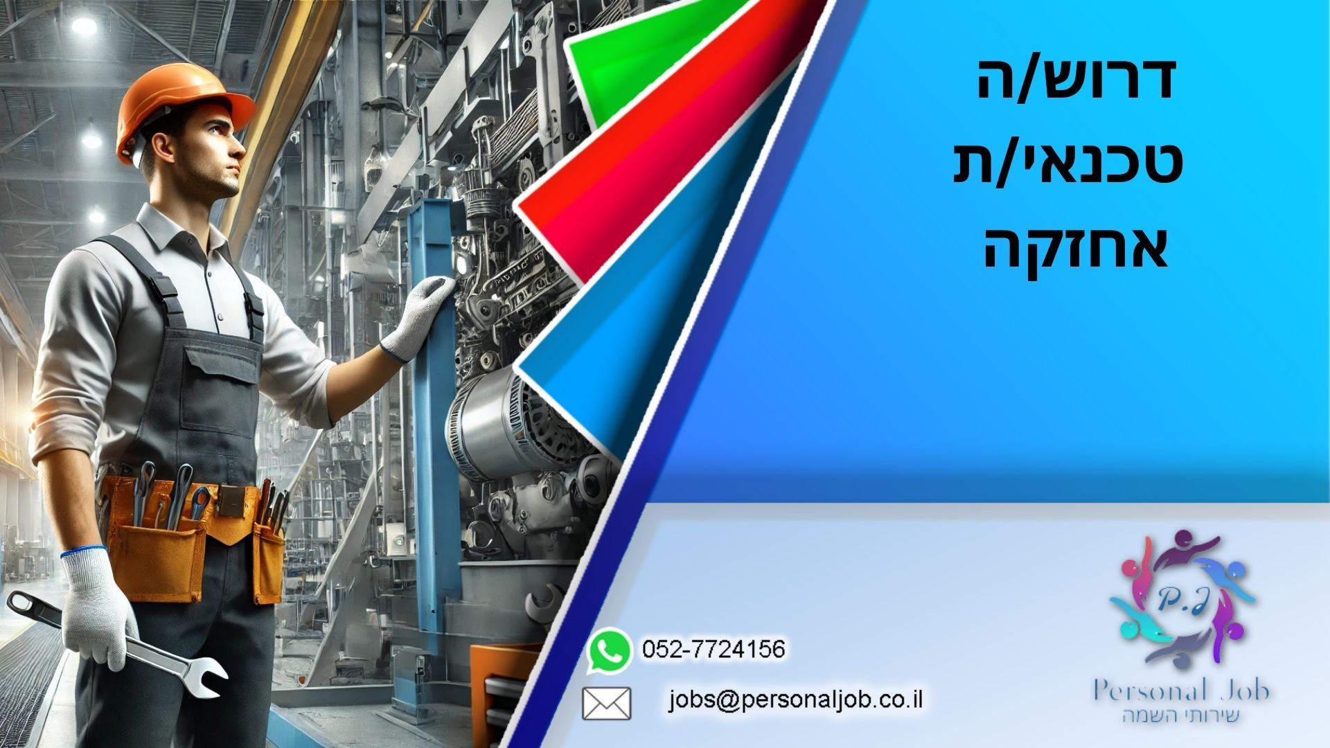 🔧 לחברה מובילה בקריית גת דרוש/ה טכנאי/ת אחזקה