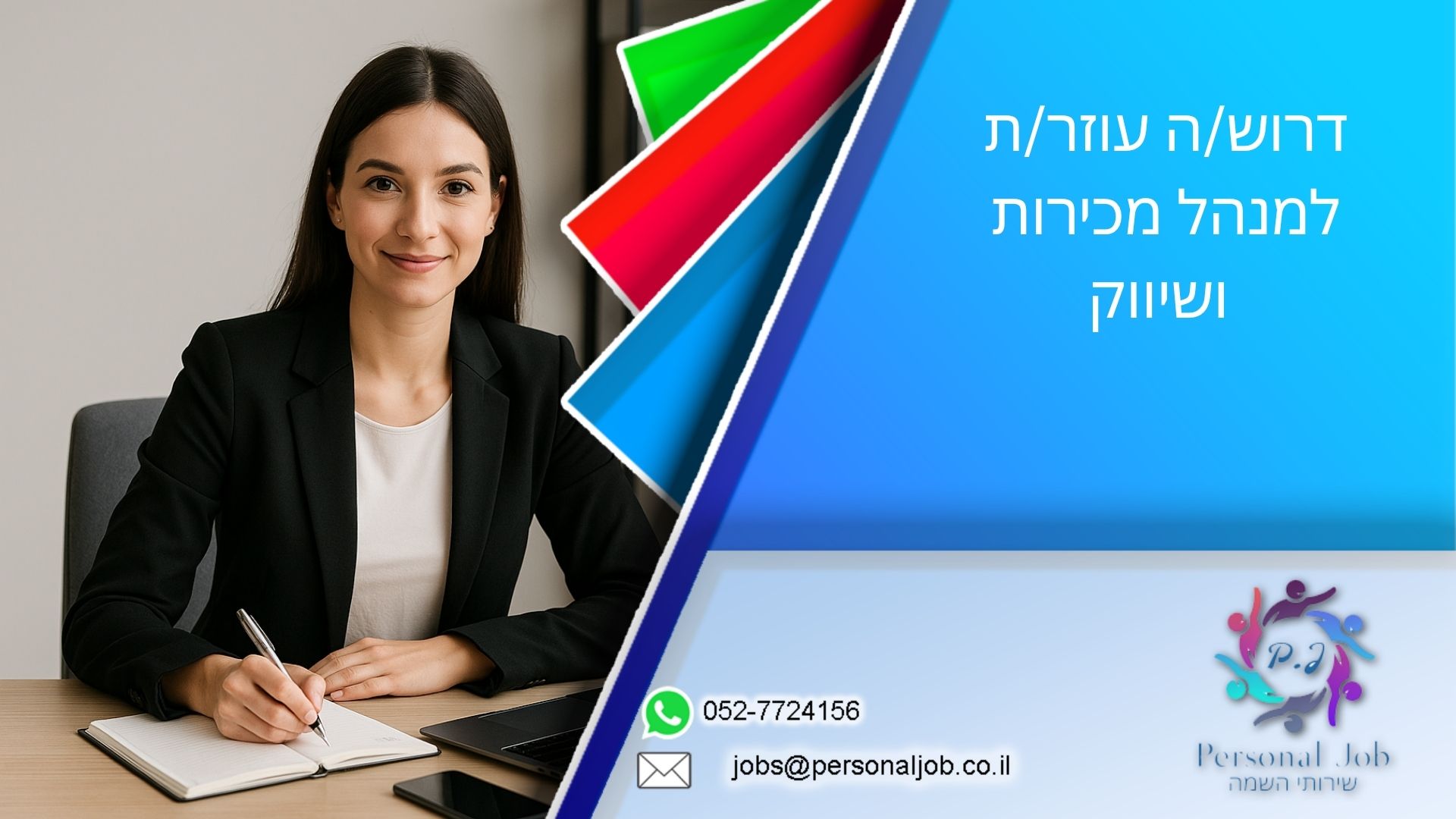 📊 לחברה מובילה באשדוד דרוש/ה עוזר/ת למנהל מכירות ושיווק